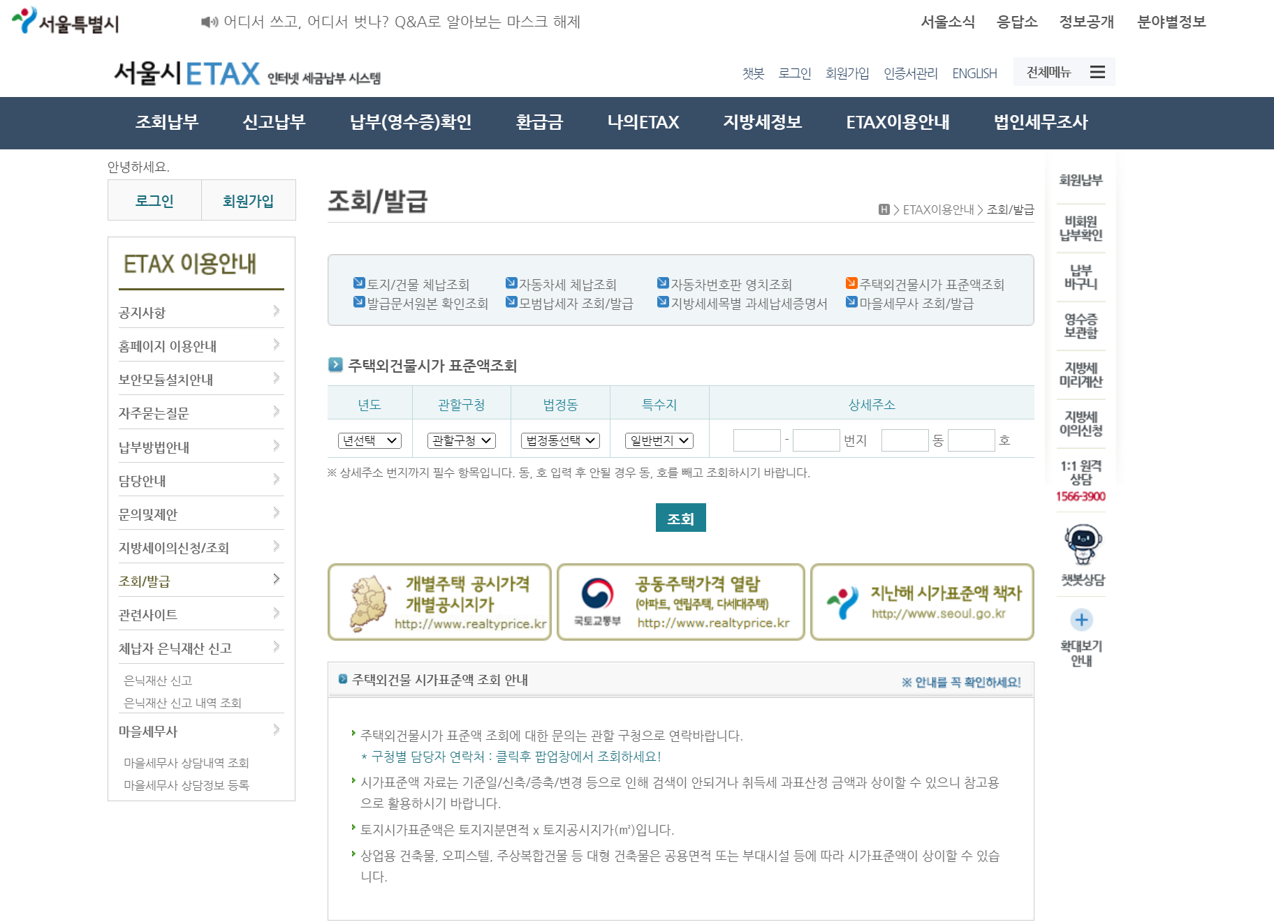 서울시의 ETAX 사이트와 서울 외 지역의 WTAX 사이트에서 건물시가표준액을 조회하는 방법을 알아보겠습니다.