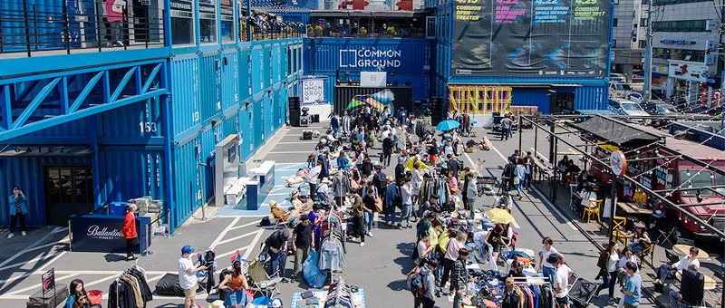 서울 광진구 자양동 건국대 부근에 20~30대 젊은 층과 외국인들이 즐겨 찾는 파란색 건축물이 있다. 화물용 컨테이너로 만들어진 ‘커먼그라운드’입니다. 이 건물은 40피트(약 12.2미터) 컨테이너 200개를 쌓고 붙여 탄생했습니다. 이곳이 지역 랜드마크로 자리 잡으며 트렌디한 쇼핑몰은 물론 유명 아이돌의 공연이나 작품 전시회 등이 자주 열려 주변 상권까지 들썩거리게 만들고 있습니다.