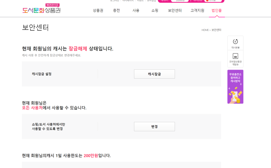 상품권 교환 클릭하기