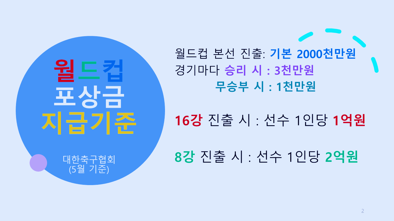 <월드컵 포상급 지급 기준>(대한축구협회, 5월)
