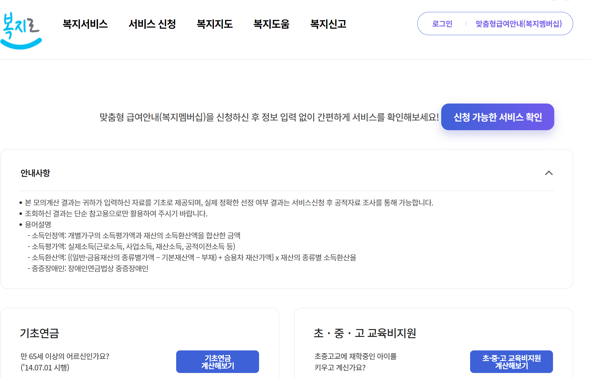 본인이 차상위계층 대상인지는 먼저 모의계산을 할 수 있습니다. 또한 받을 수 있는 복지 혜택이 있는지 복지로 사이트의 맞춤형급여안내를 이용할 수 있습니다.