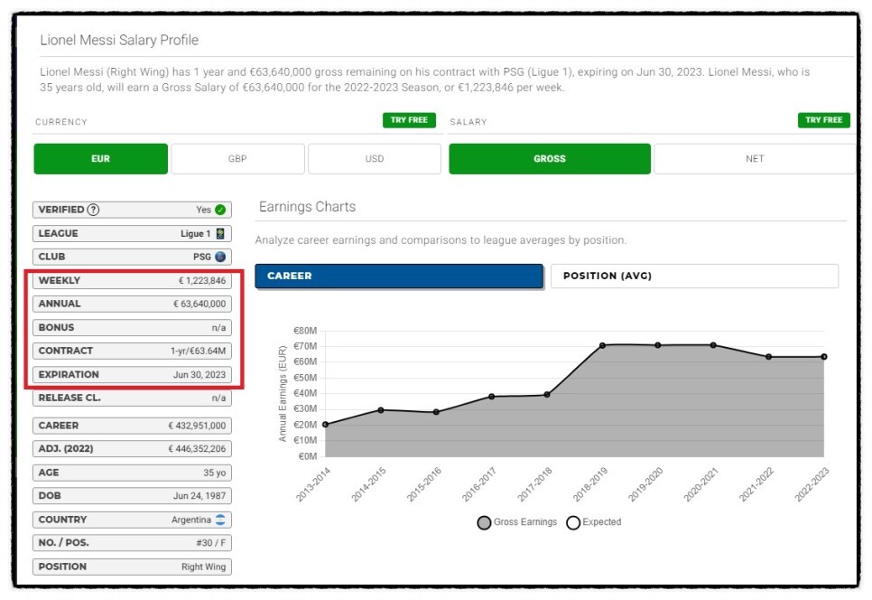음바페 다음으로 높은 주급과 연봉을 자랑하는 리오넬 메시입니다.