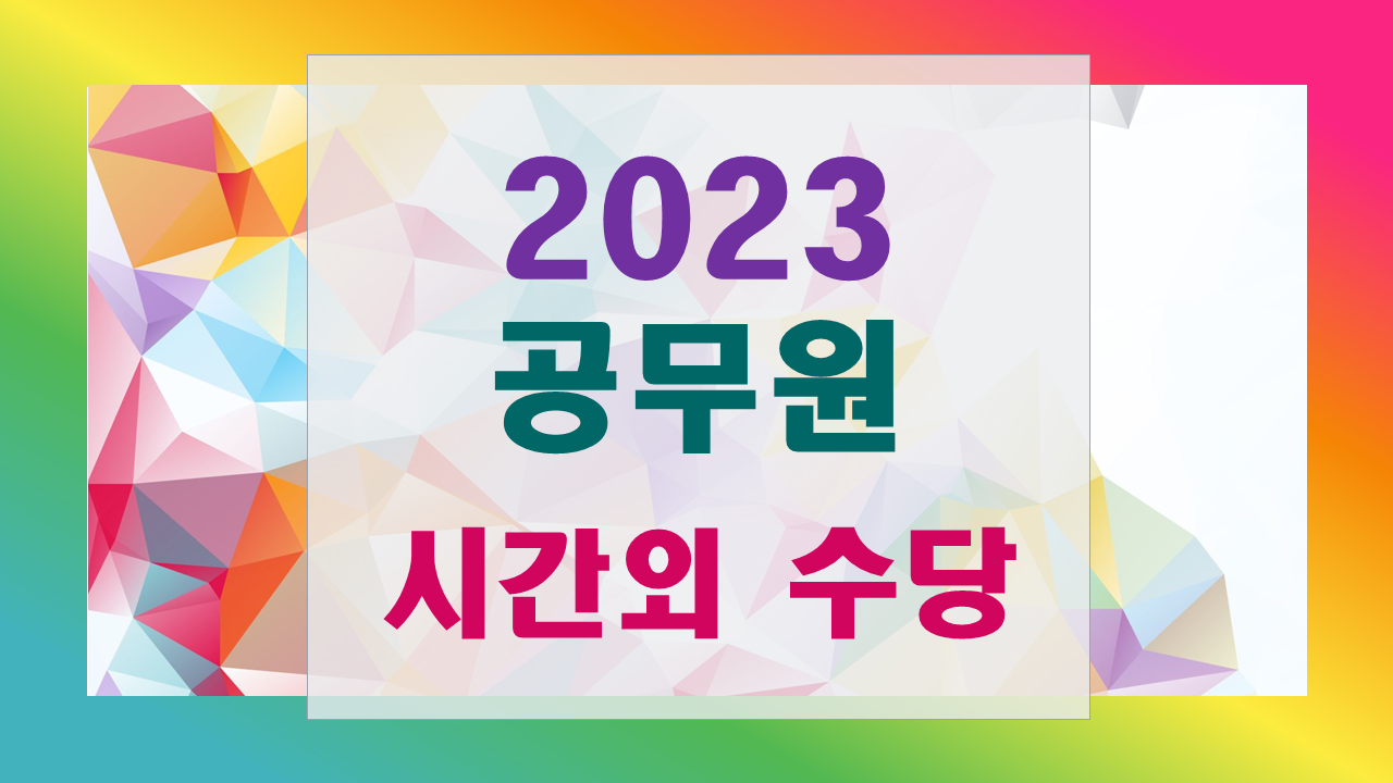 오늘은 2023년 공무원 초과근무수당, 시간외, 휴일, 야간근무 수당에 대해서 알아보도록 하겠습니다.