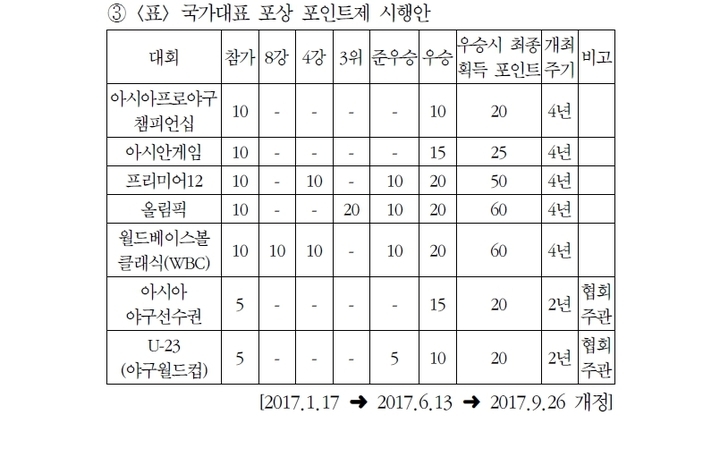 국가대표 포상 포인트가 선수에게 중요한 경제적 보상으로 꼽힙니다. 선수에게 프리에이전트(FA) 자격은 재계약을 하거나 팀을 옮기면서 자신의 가치를 증명할 기회입니다.